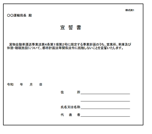 に行い、「宣誓書」の提出により行います。↓は「宣誓書」の例です。