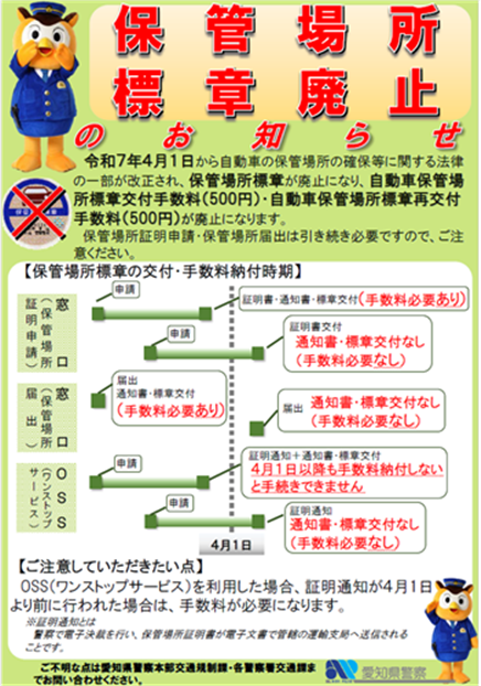 □保管場所標章交付手数料は令和7年4月1日から不要となりました。